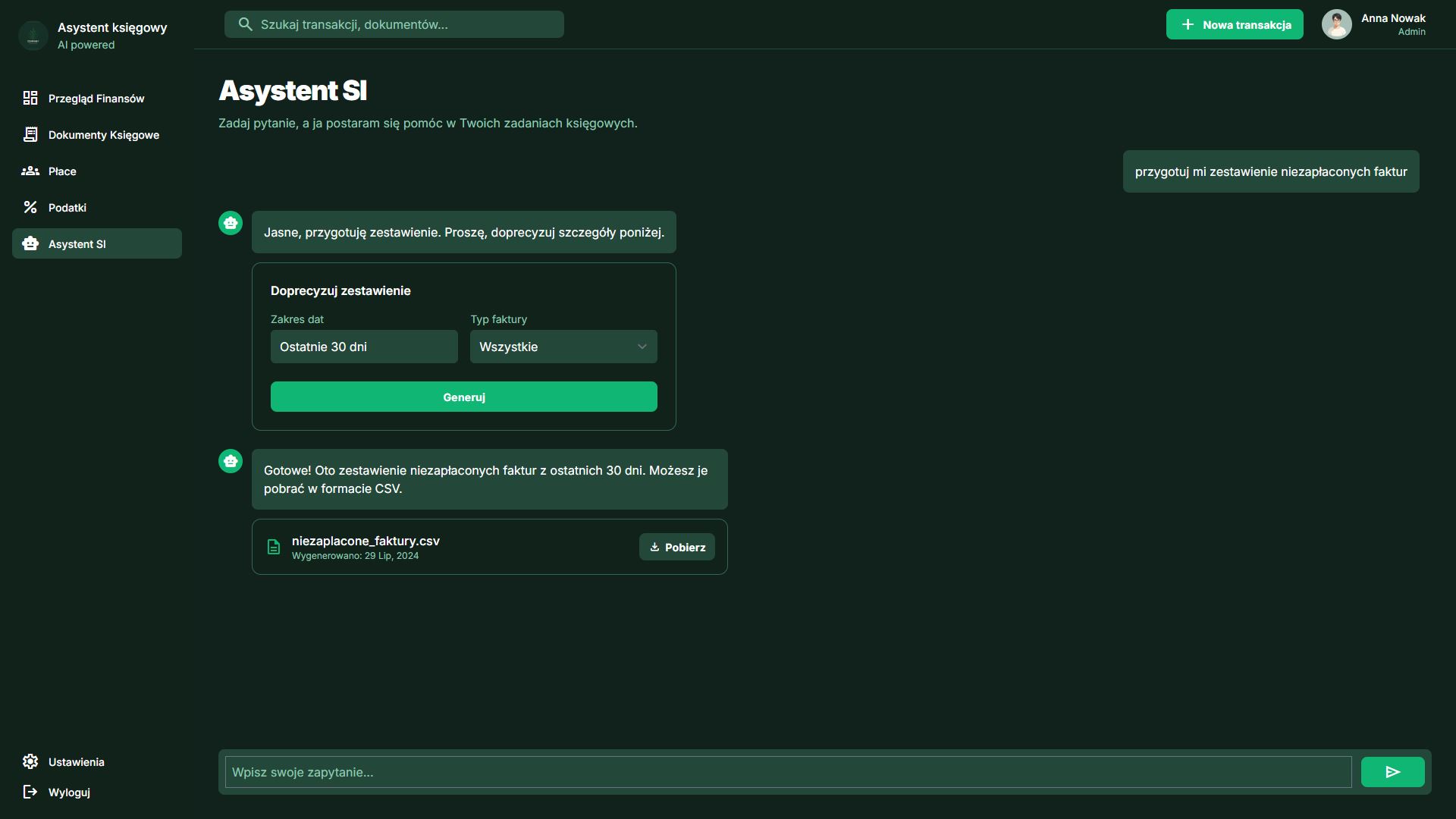 Całość tworzy środowisko pracy, w którym księgowi nadal kontrolują kluczowe decyzje, ale powtarzalna i czasochłonna część procesu została przeniesiona do warstwy automatycznej i inteligentnej. Dzięki temu Asystent Księgowy realnie odciąża zespół, zwiększa dokładność i sprawia, że codzienna praca staje się znacznie bardziej uporządkowana i przewidywalna.